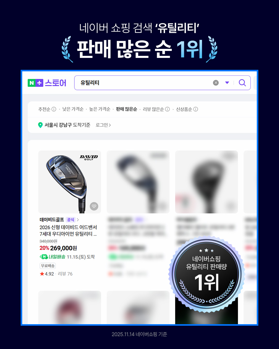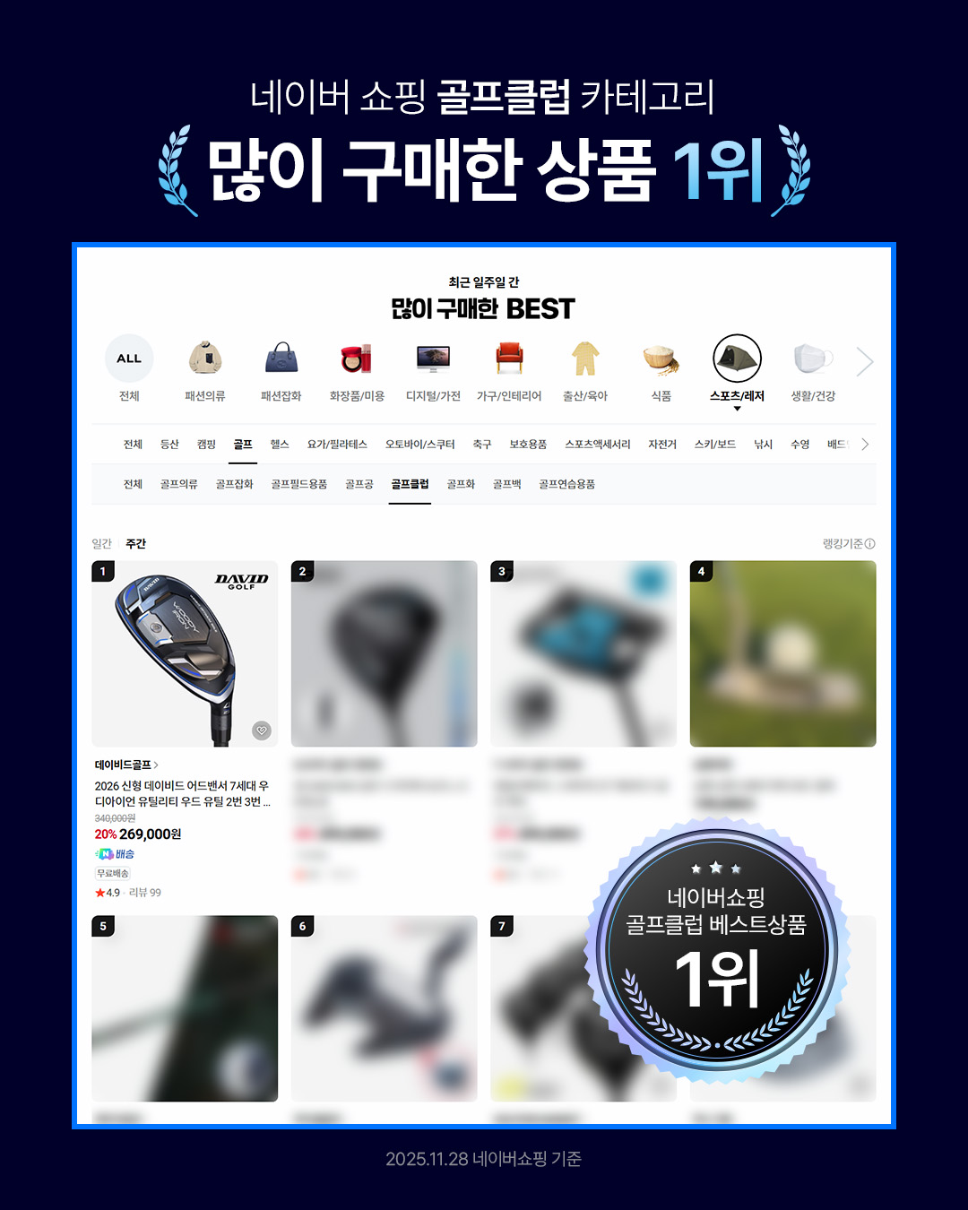 네이버 유틸리티 및 골프클럽 판매 1위를 달성하였습니다.
